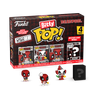 Your favorite merc with a mouth Pops! have been shrunk into Bitty Pops! Expand your collection with this assortment of Bitty POP! figures featuring your most beloved toys as miniaturized figures! Expand your Deadpool collection with this assortment of Bitty POP! figures featuring the most iconic anti-hero around! This 4-pack includes Bitty POP! Deadpool (Backyard Griller), Bitty POP! Deadpool (Clown), Bitty POP! Deadpool (Bedtime) and a mystery Bitty POP! figure. The possible mystery Bitty Pops! are Rare (1/3) Deadpool (Lederhosen), Rare (1/3) Deadpool (Beauty Pageant), Hyper Rare (1/6) Deadpool (Tourist), and Hyper Rare (1/6) Deadpool (French Maid).