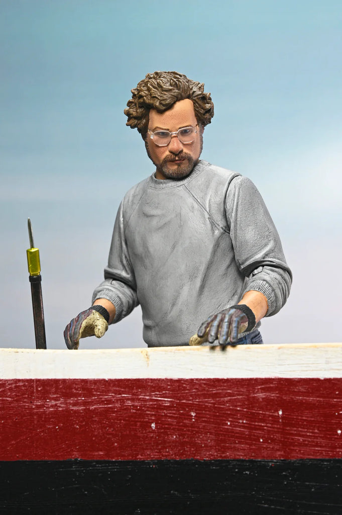 Celebrate 50 years of Jaws with NECA! Considered one of the greatest achievements in film, the classic 1975 Steven Spielberg thriller paved the way for what would become the summer blockbuster. The iconic character Matt Hooper, portrayed by Richard Dreyfuss, is now available as an Ultimate action figure. Standing in 7-inch scale, the young oceanographer is equipped with multiple interchangeable heads, hands, and gloved hands. Plus, fishing hook, scuba tank, cup, crushed cup, shark dart, and duffel bag. He also features interchangeable arms for an alternative look in his denim jacket or sweater. Comes in collector-friendly window box packaging with opening front flap.