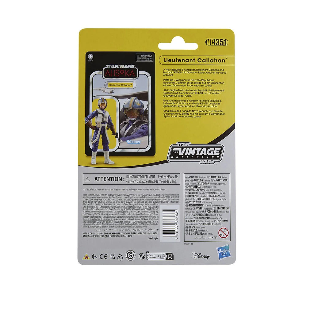 Celebrate the legacy of Star Wars with premium vehicles, playsets and action figures from Star Wars: The Vintage Collection. Based on Lieutenant Callahan from the Disney+ live-action television series Star Wars: Ahsoka, this 3.75-inch scale action figure makes a great addition to any fan collection. Inspired by the original line, these collectibles feature premium detail and design across product and packaging, as well as collector-grade deco that fans have come to know and love. May the Force be with you!