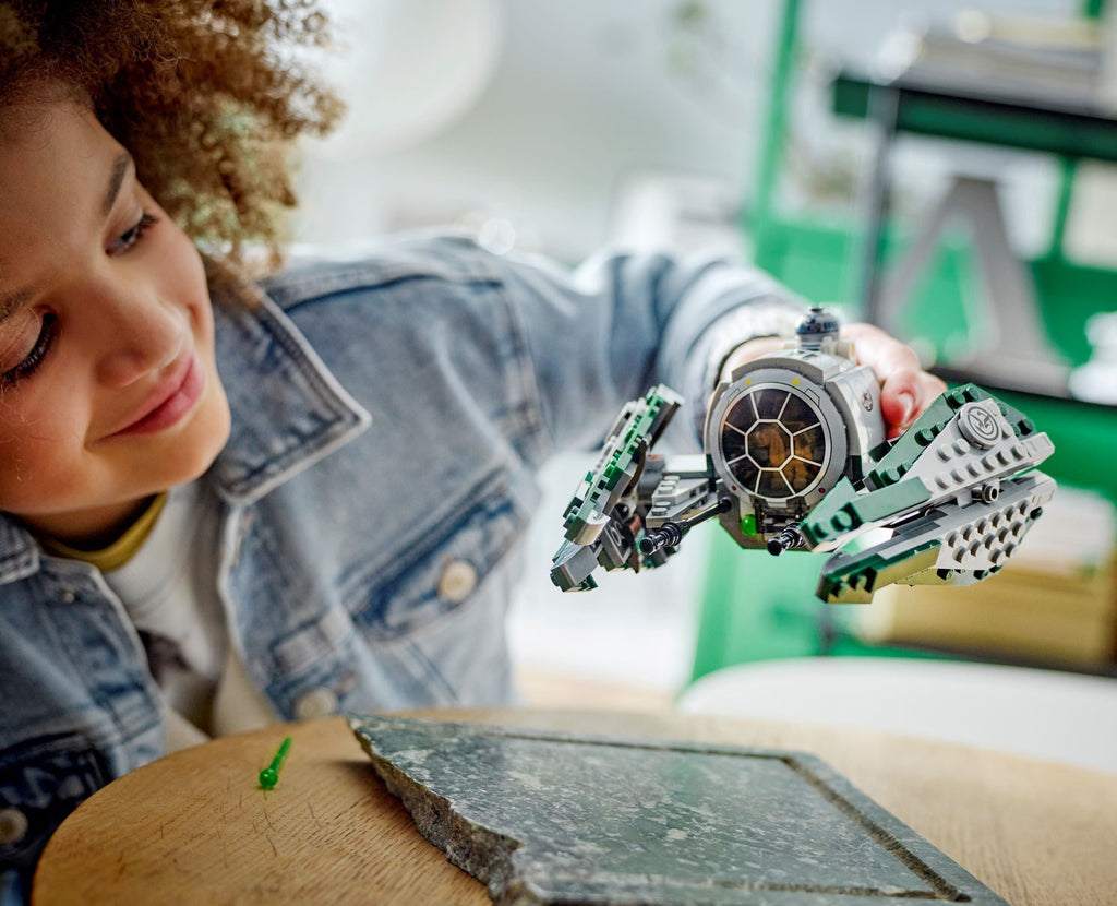 Kids can team up with 2 iconic Star Wars characters and play out thrilling missions with this LEGO brick-built model of Yoda’s Jedi Starfighter.