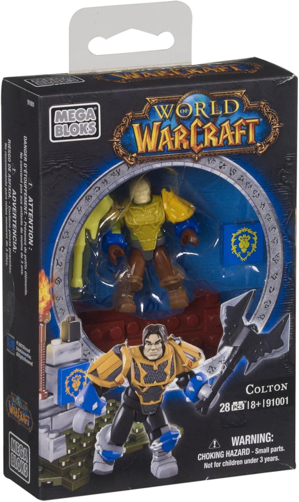 From World of Warcraft by Mega Bloks, build and customize Colton, the heroic Human Paladin, with interchangeable gear featuring the collectable Judgement Armor spaulders. Includes an Alliance buildable terrain inspired by the Human-inhabited Stormwind City.