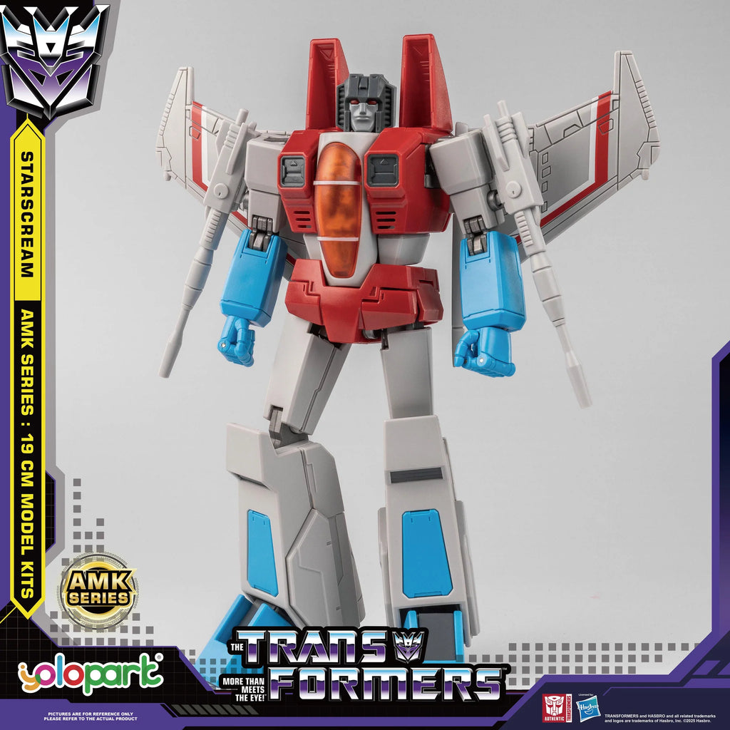 This figure is part of the Yolopark AMK series toy line, which are easy to assemble action figures. All parts come pre-painted and pre-assembled, so you just have to connect head, torso, limbs and some extra panels. Once constructed, you end up a highly detailed figure packed with premium articulation. The red and silver battle armor recreates his legendary color scheme, with delicate painting that showcases an extraordinary texture, faithfully restoring the iconic look of G1 Starscream. The chest chamber and missile bays on both sides can be opened, greatly enhancing the playability.