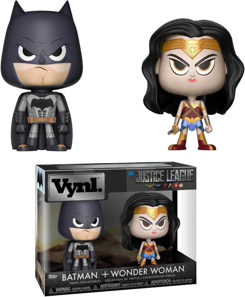 From DC, Batman and wonder Woman as a Vynl.-stylized 2-pack from Funko! Figures stand approximately 3.75 inches tall and come in a window display box. These 2 founding members of the Justice League are among the most iconic DC super heroes and will make great additions to any DC fan’s collection.