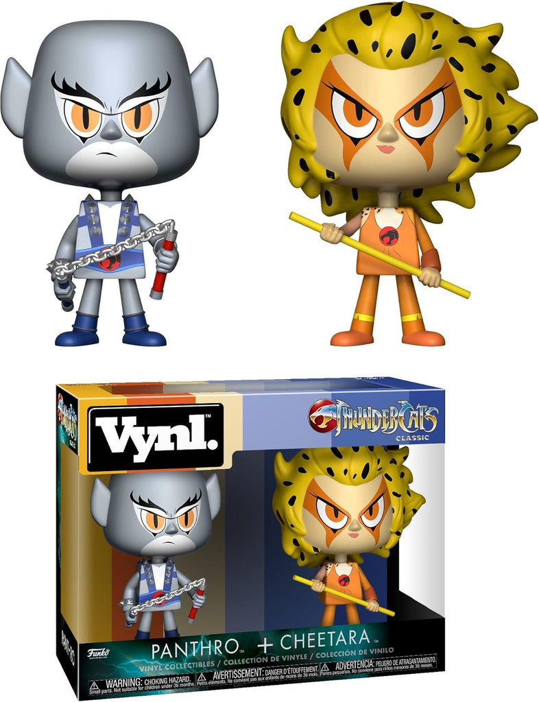 From Thunder Cats, Panthro and Cheetara as a Vynl.-stylized 2-pack from Funko! Figures stand approximately 3.75 inches tall and come in a window display box.