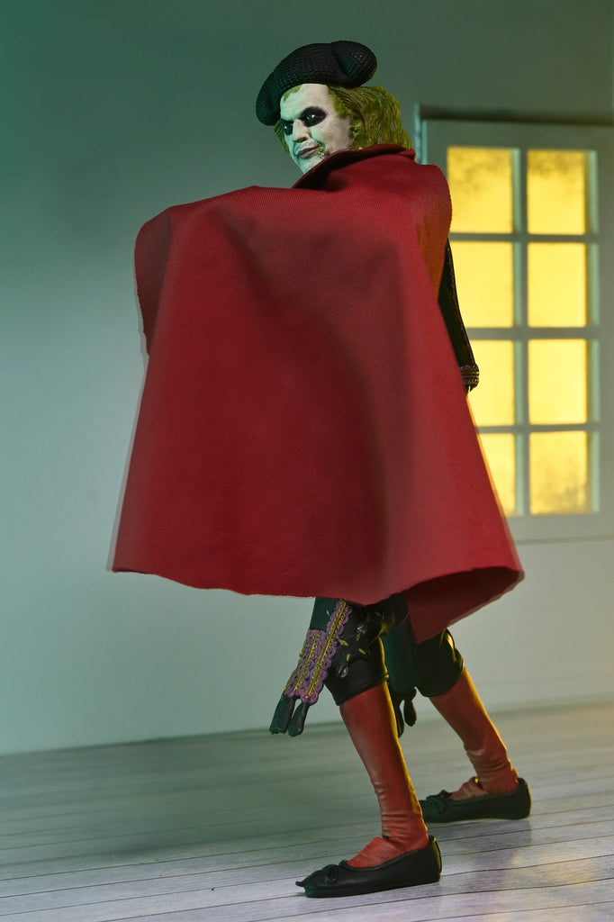 The Ghost with the Most is back! From Tim Burton’s 2024 sequel film, Beetlejuice Beetlejuice, the famous bio-exorcist returns once again to scheme Lydia into marriage so he can finally escape the Afterlife. At the wedding, his nefarious plan is foiled when Lydia’s daughter, Astrid, brings a Sandworm into the land of the living to stop him. Beetlejuice quickly transforms into a matador to distract the monstrous Sandworm to swallow his ex-wife instead. NECA brings the chaos of the iconic scene to life with highly detailed Beetlejuice and Sandworm figures in 7-inch scale. Standing over 12 inches tall, the Sandworm is mounted on a church floor base and features articulated jaws, heads, and tongue for dynamic posing. Ultimate Matador Beetlejuice comes with a cloth cape and interchangeable hands and faceplates. This 2-pack comes in window box packaging perfect for display in your NECA Beetlejuice collection!