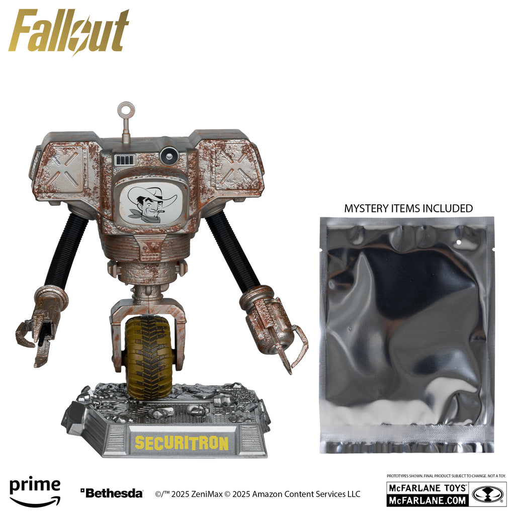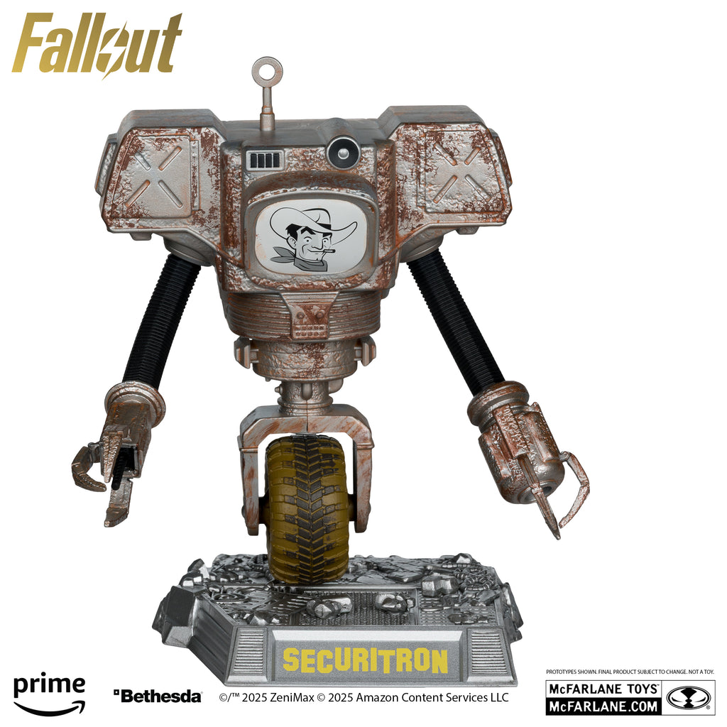 Securitrons are heavily armed, monowheel security robots developed by RobCo and H&H Tools. Built with titanium alloy and advanced displays, they are resistant to small arms fire and capable of showing expressive facial animations. Designed for defense and control, they are a key force in maintaining order across the Fallout wasteland.