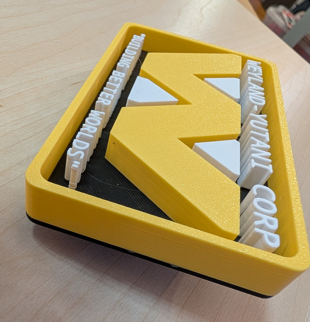 This novelty, pop art, desktop paper weight displays an attractive, eye-catching (and sinister) Weyland-Yutani Corp embossed logo in white and yellow against a black background, with their accompanying Building Better Worlds company slogan -- omnipresent throughout the Alien franchise universe.