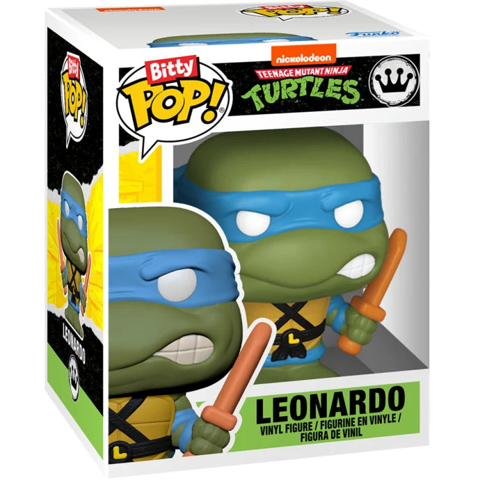 The world of POP! is getting bigger -- and smaller -- with Bitty POP! collectibles! Expand your Teenage Mutant Ninja Turtles collection with the Bitty POP! Bitty Box Sewer Lair! This hard acrylic display case is modeled to resemble a POP! box and opens to reveal iconic rooms from around Sewer Lair. This collectible also includes Bitty POP! Michelangelo and Bitty POP! Leonardo! Mix and match with more of your favorite Bitty POP! figures with this Bitty Box collectible!