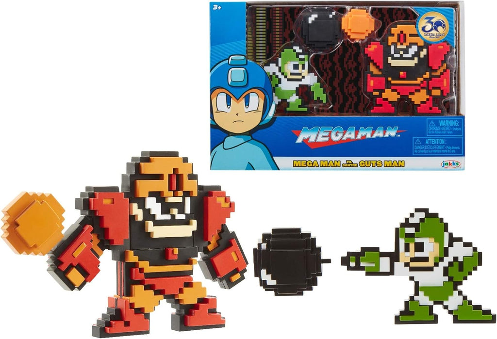 Jakks - Megaman 30th - Classic 8-Bit Mini-Figure 2-Pack - Green/White Mega Man vs. Guts Man (34177) LAST ONE!