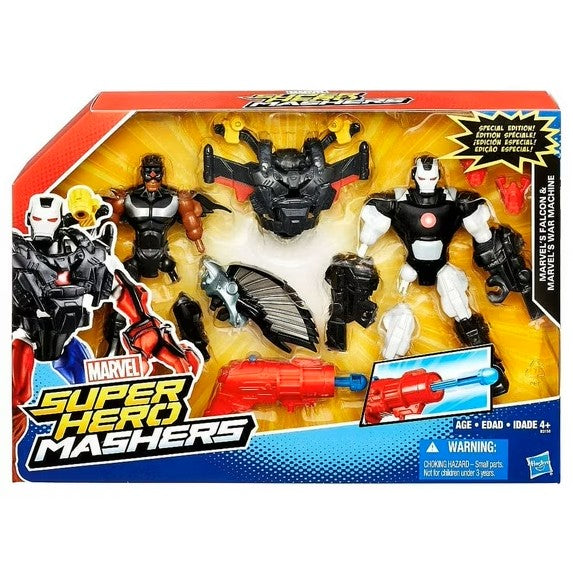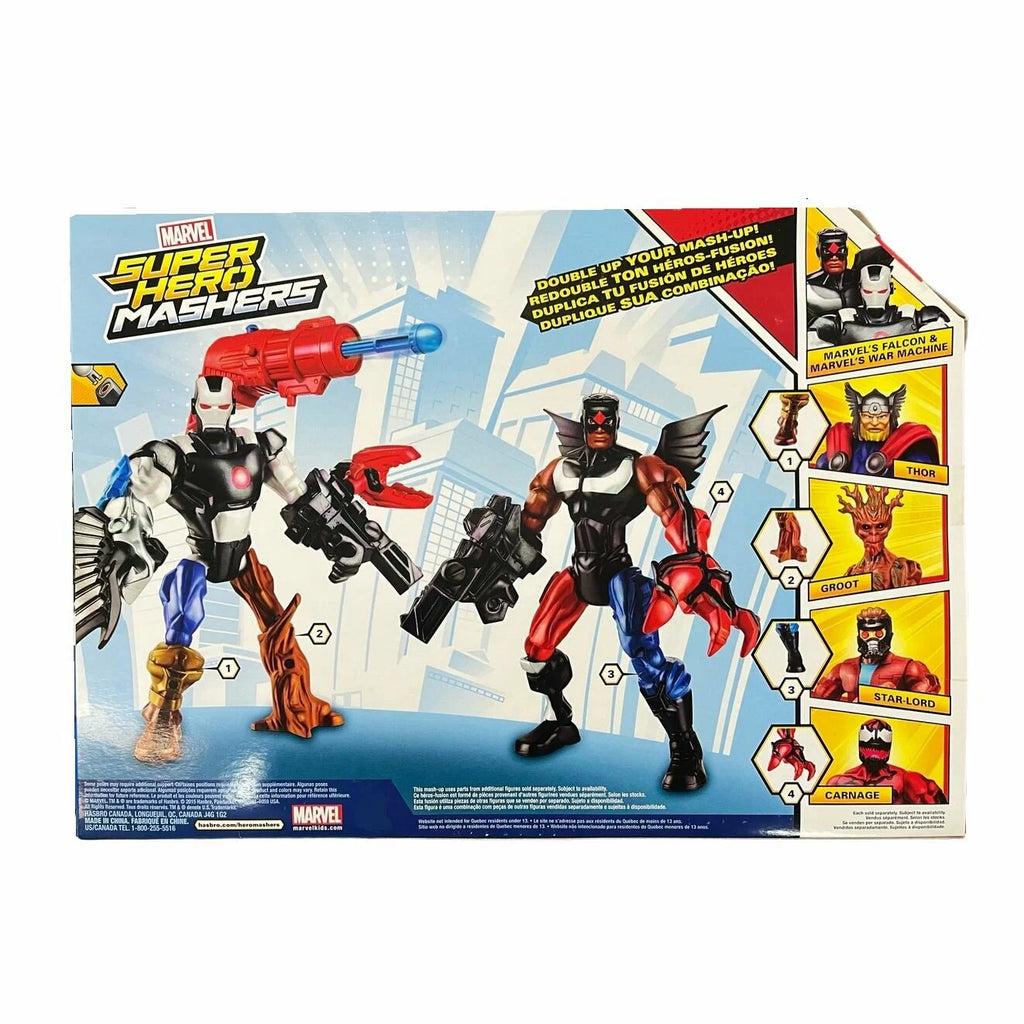 Lend these two Marvel Super Heroes a hand -- and a foot -- with this Marvel Super Hero Mashers 2-pack! Imagine if Falcon and War Machine had even more powers, like a Carnage monster claw, or a branch-bashing Groot leg. Each figure is customizable and has connection points to detach, reconnect and swap parts from the accessories in this set, or any other Super Hero Mashers figures (sold separately). Besides Falcon and War Machine, this collection includes parts from Thor, Groot, Star-Lord and Carnage. Build and customize a Hero Masher, and get ready for an epic, mashed-up adventure!