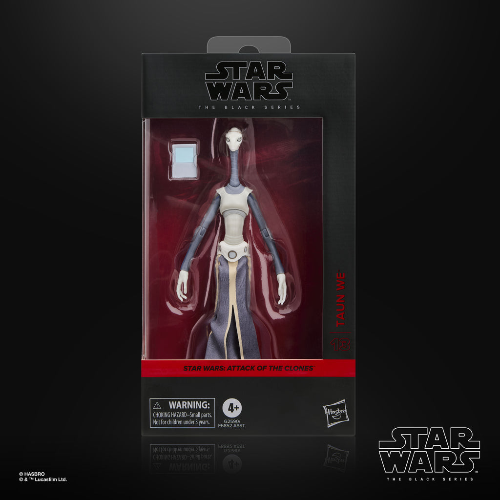 Star Wars The Black Series includes 6 inch action figures, vehicles, and roleplay items from the 40-plus-year legacy of the Star Wars galaxy, letting fans create galactic scenes with a faithfulness to Star Wars comic books, movies, series, and more. This Star Wars Hasbro action figure is detailed to look like Taun We from Star Wars: Attack of the Clones. With exquisite features and decoration, The Black Series embodies the quality and realism that Star Wars devotees love. May the Force be with you! (Additional products each sold separately. Subject to availability.)