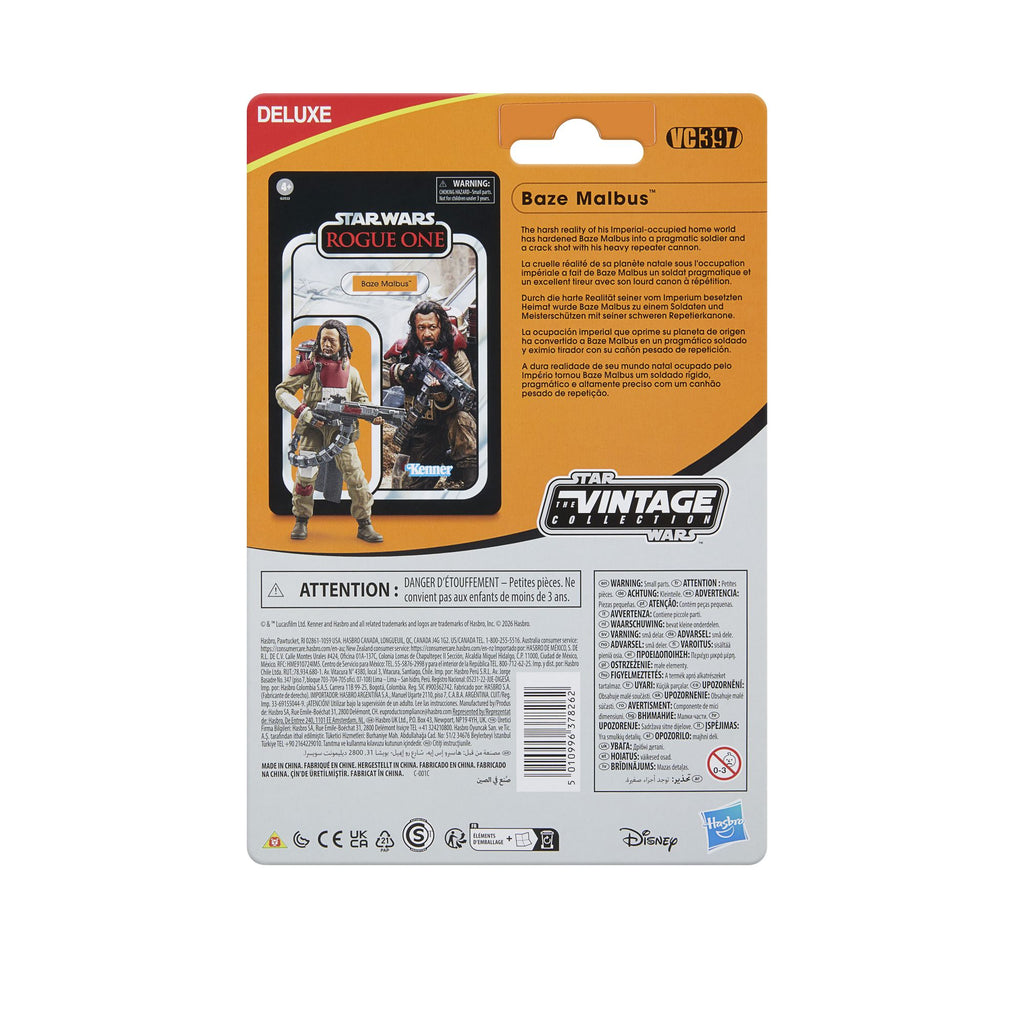 Celebrate the legacy of Star Wars with premium vehicles, playsets, and action figures from Star Wars The Vintage Collection. (Additional products each sold separately. Subject to availability.) Based on Baze Malbus from Rogue One: A Star Wars Story, this 3.75-inch-scale figure makes a great addition to any fan’s collection. Inspired by the original line, these collectibles feature premium detail and design across product and packaging, and collector-grade deco that fans have come to know and love. May the Force be with you!