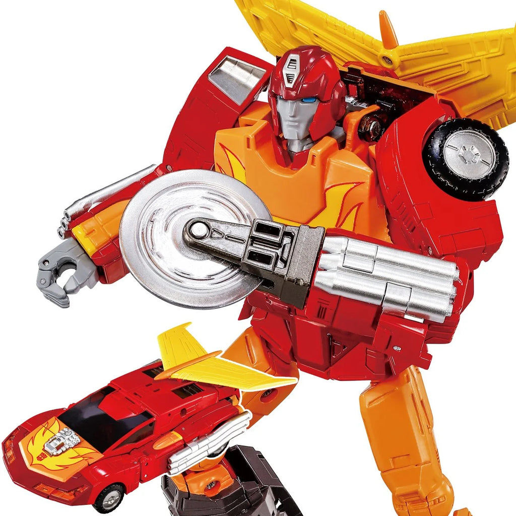 Hot Rod is now in the "Style Gen." series, a new interpretation of the "MPG" series. Style Gen. is a new line that has been refined in terms of transformation difficulty, proportions and detail, articulation and posing, vehicle play, and weapon play, resulting in an even more refined style than the previous Masterpiece/MPG series. Includes 2 blasters, 2 torches, 1 power base joint, 1 weapon mount joint, 1 card, and instructions.