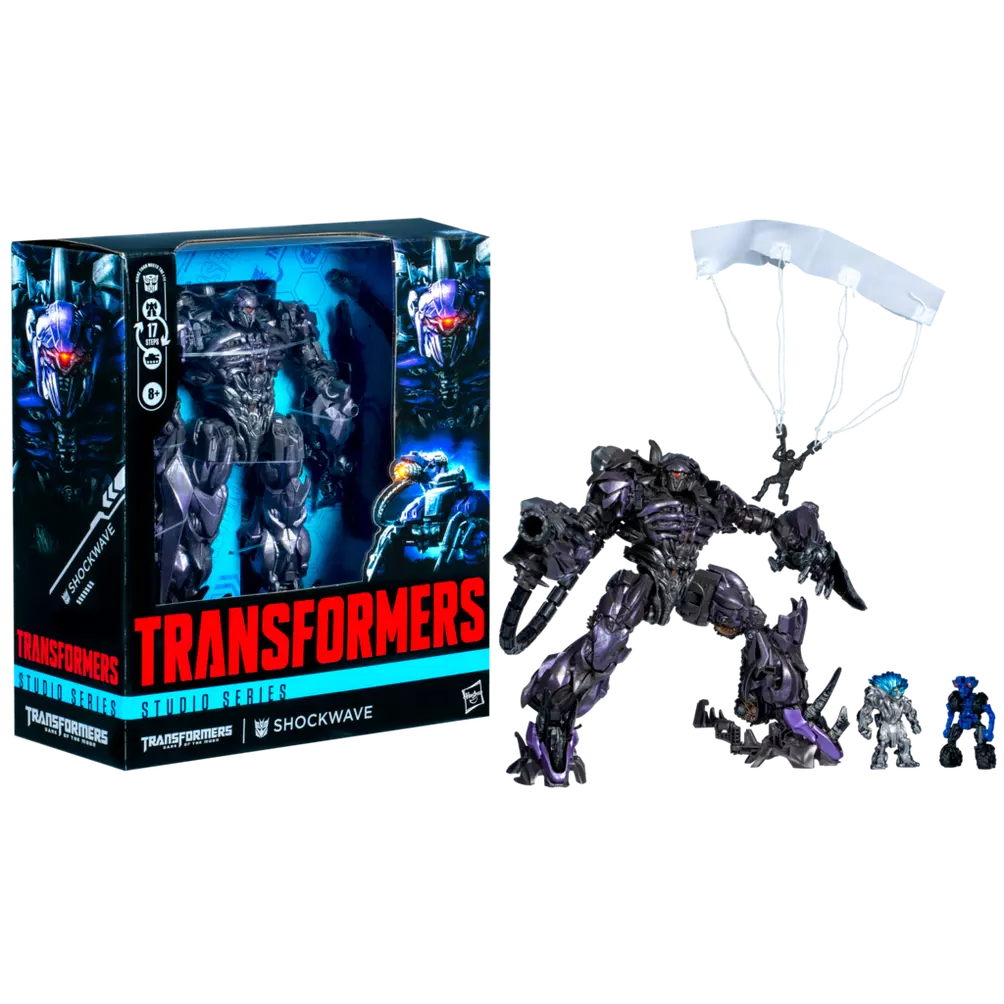 Bring the epic action of the Transformers movies from the big screen into your collection with the Transformers Studio Series Leader Class Shockwave action figure, inspired by Transformers: Dark of the Moon! Transformers Studio Series toys are collectible action figures that feature movie-inspired details and accessories. The figure converts from robot to cannon mode in 17 steps and features articulated head, arms, and legs for awesome action poses. It comes with 3 figures and 1 accessory. Look for more Transformers Studio Series collectible figures to build a movie-inspired collection, each sold separately, subject to availability.