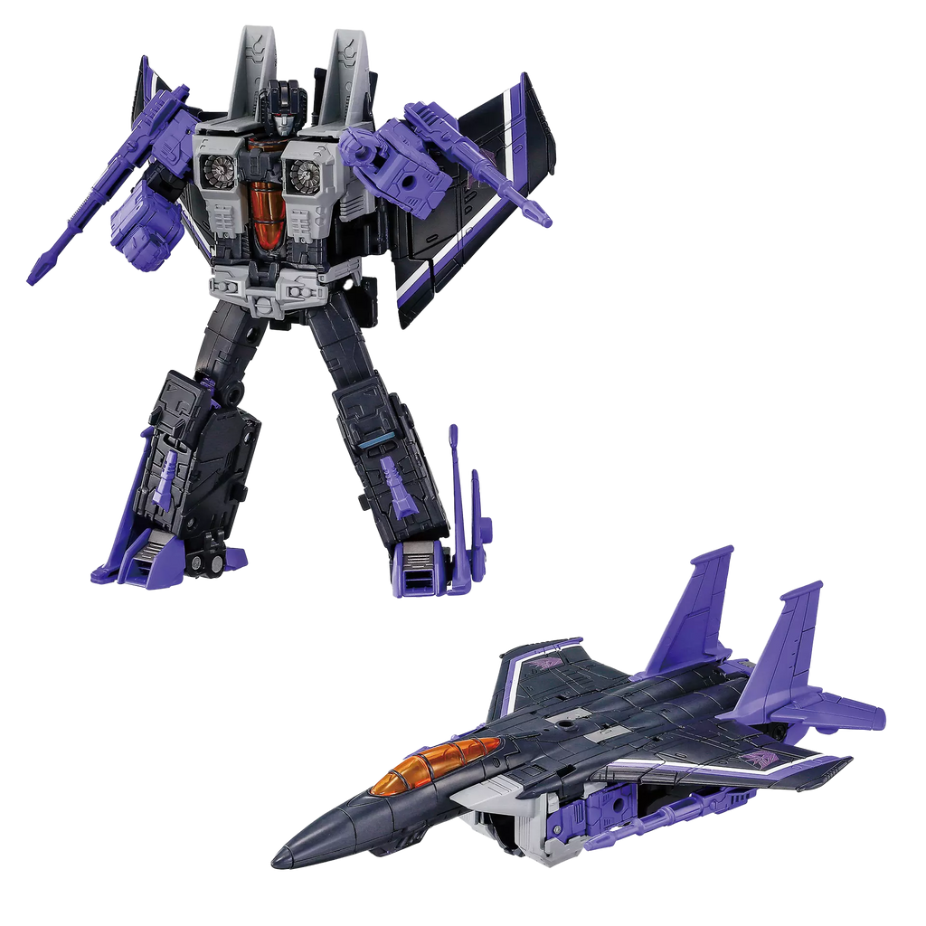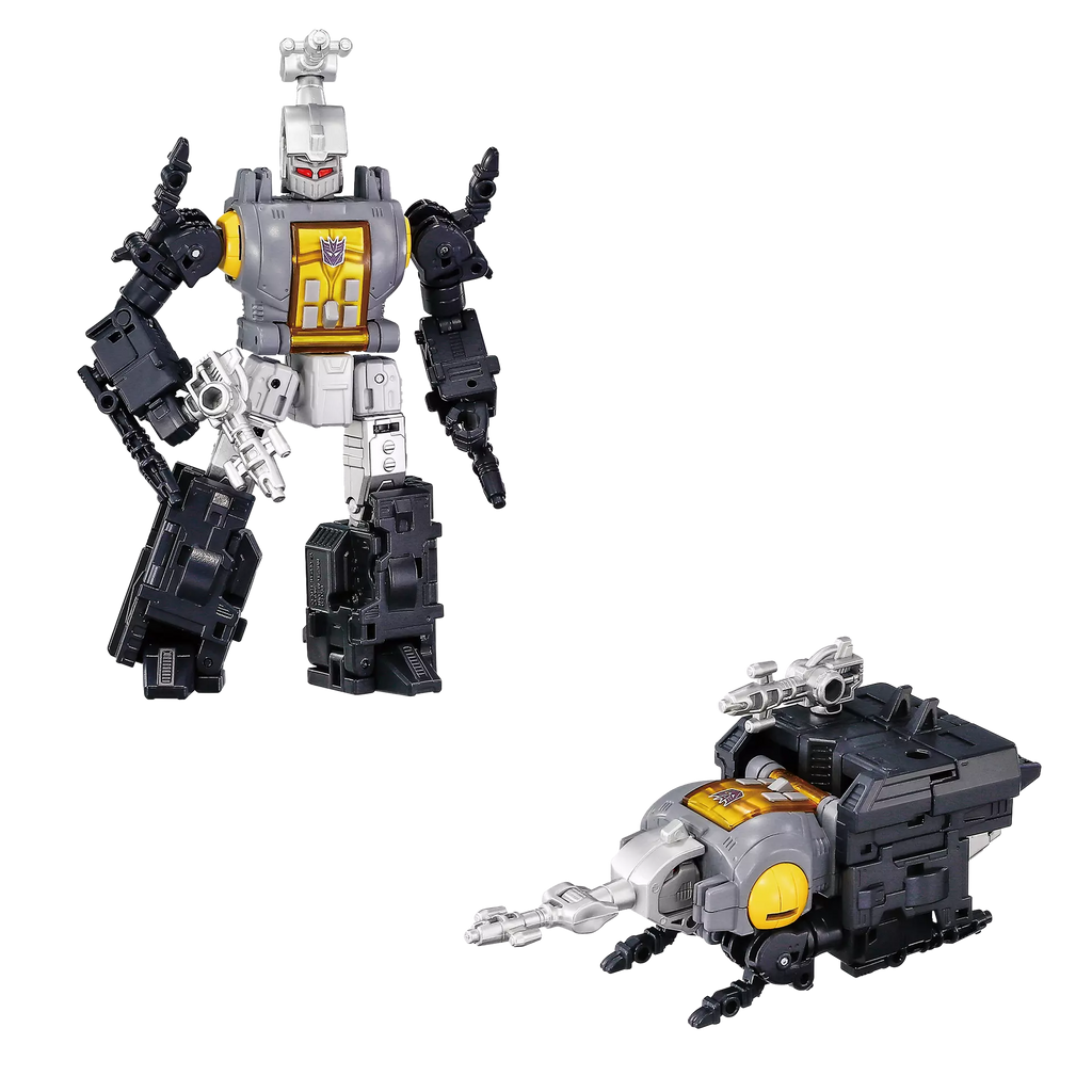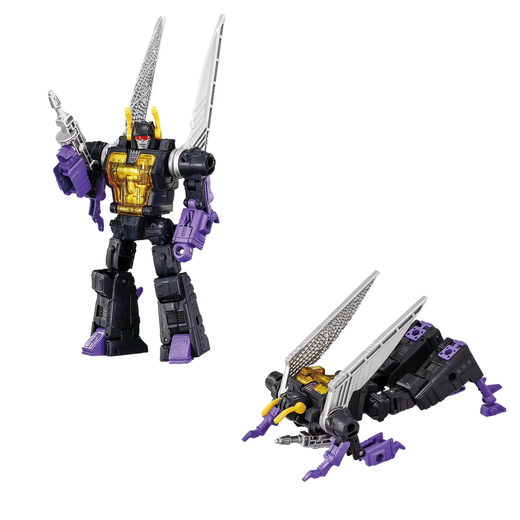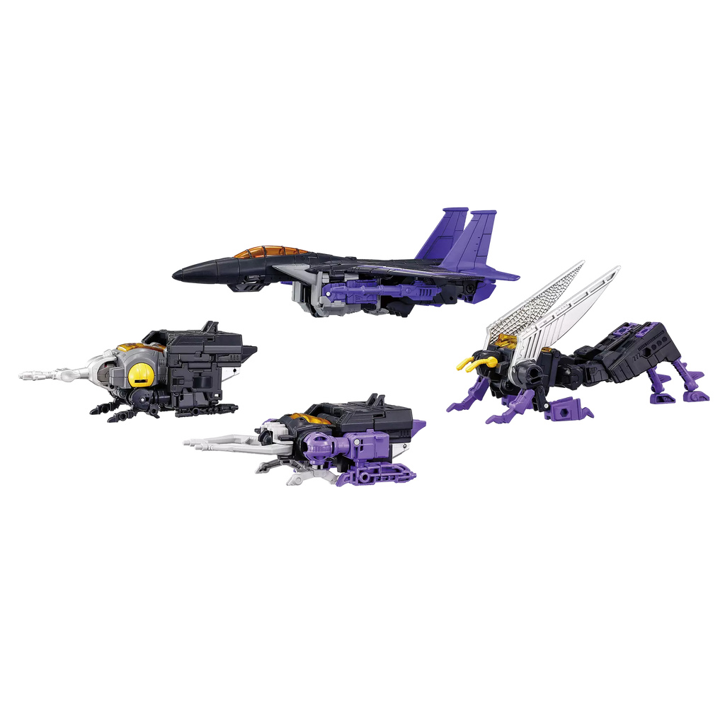 Delicious energon cubes, cubes! This set of four Decepticons is a must-add to any collection of cartoon favorites. The sixth installment of the popular Dramatic Capture Series is Decepticons Part 2, a second set of the Decepticons’ loyal soldiers, Skywarp and the Insecticons. Skywarp is an airman who belongs to the Decepticons’ air force, the Seekers, and transforms into a jet plane. The Insecticons Bombshell, Kickback, and Shrapnel scout out delicious Energon cubes. Set includes four converting Decepticons plus accessory versions of Megatron (pistol), Reflector (camera), laser gun (Shockwave).
